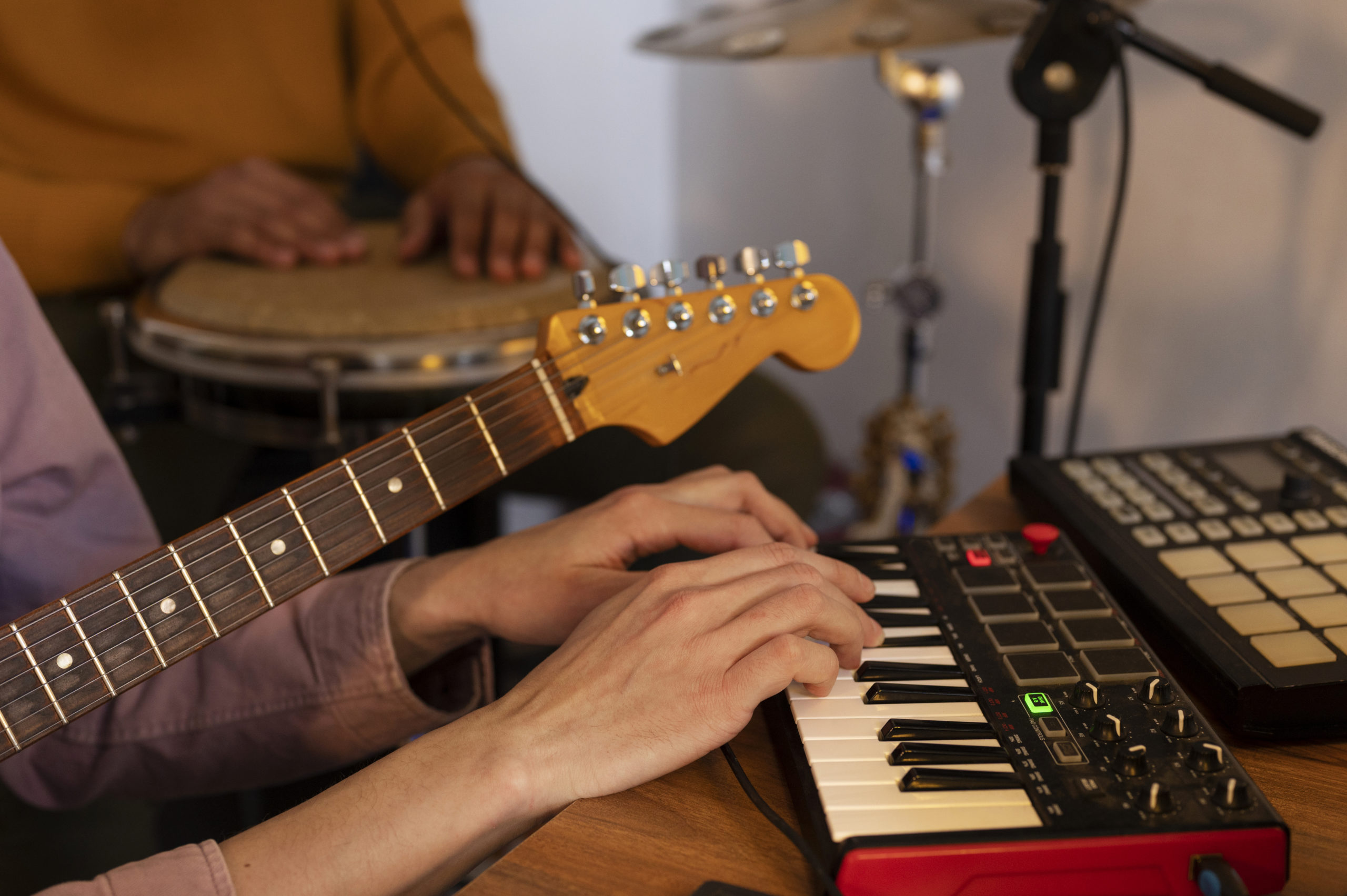 Projets de groupe avec différents instruments (piano, guitare, batterie, etc.) sur demande